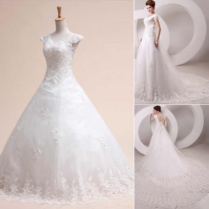 Lovely A line wedding dress with extended train, for that bride with class.